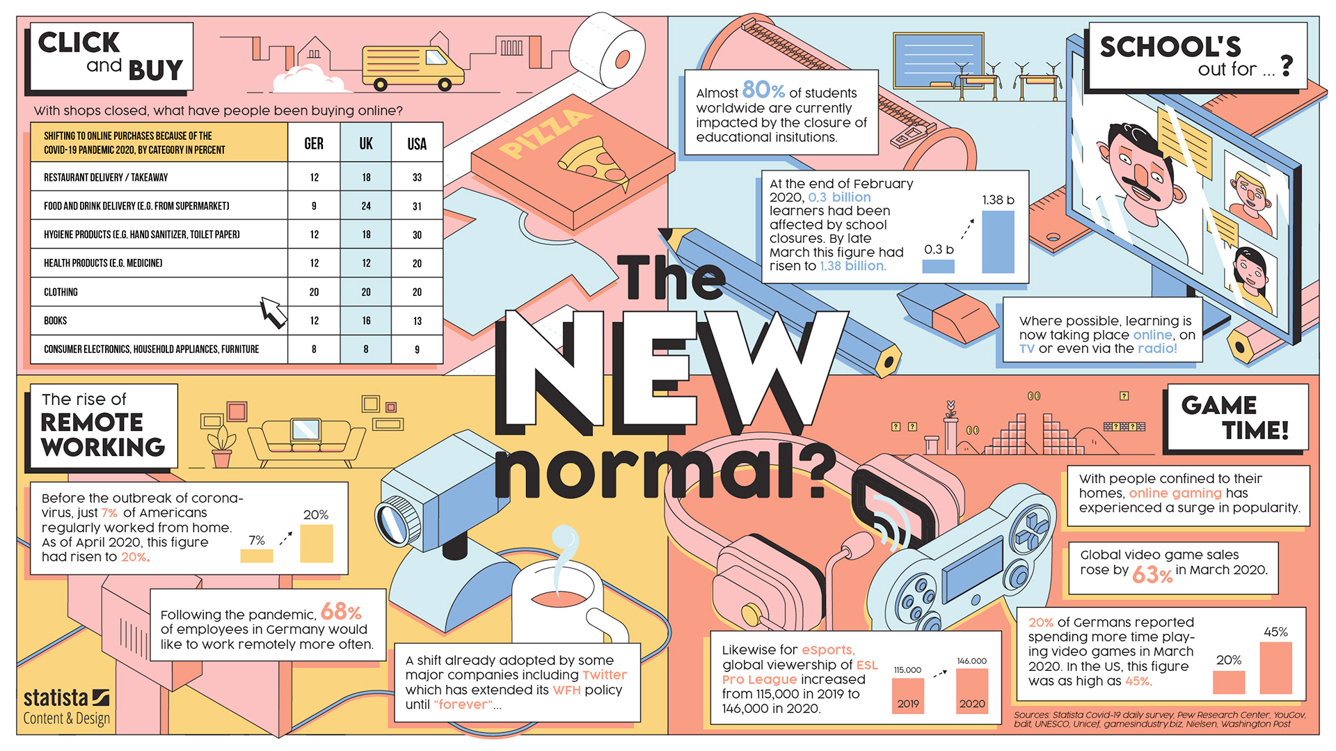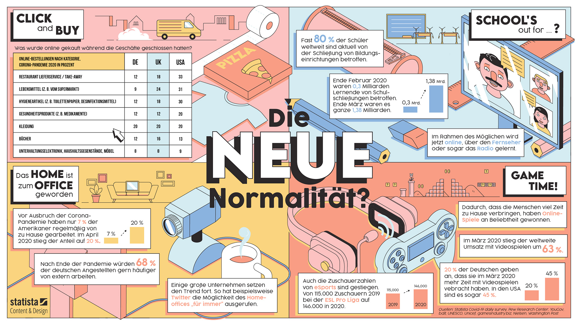 Isometric infographic showing the changes that were triggered by corona